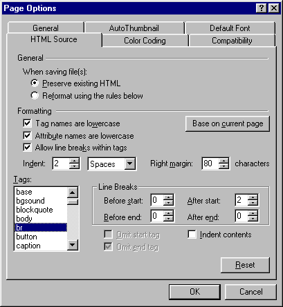 Nastavení úpravy vzhledu výsledného HTML; jde hlavně o mezery, odsazení a zlomy řádků, které se sice v prohlížeči nezobrazují, ale jejich přítomnost může usnadnit ruční úpravu HTML kódu.
